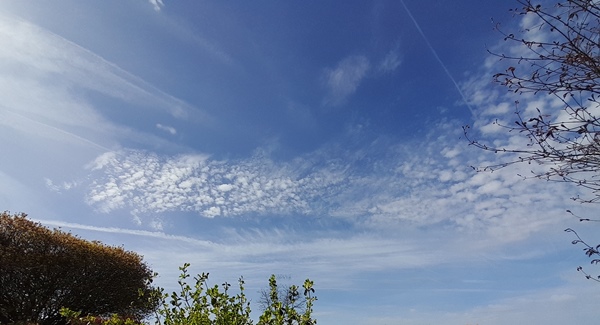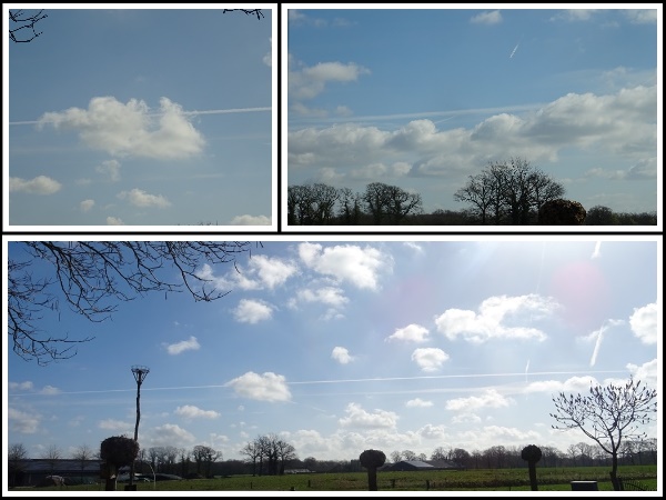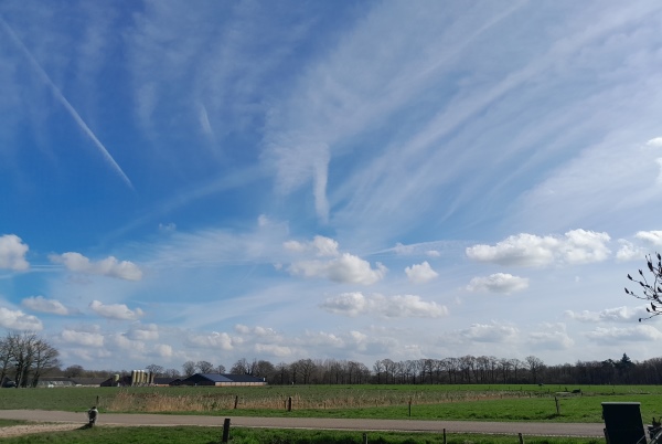 Onderweg veel blauw en enkele vliegtuigstrepen.