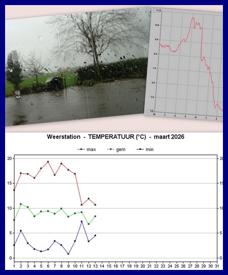 na, op het eind van de middag, droog. Max. temp. 13,6 gr.