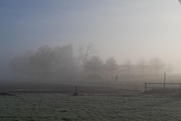 mistig. Wij verlieten het hotel en gingen richting Afferden.