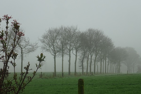 14 april. Min. temp. 1,4 gr. Een frisse start. Het was nevelig