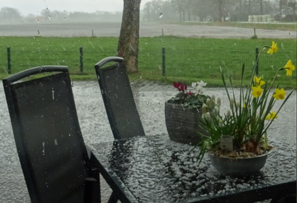 Er viel toen 4,6 mm regen. Inclusief flinke hagelstenen.