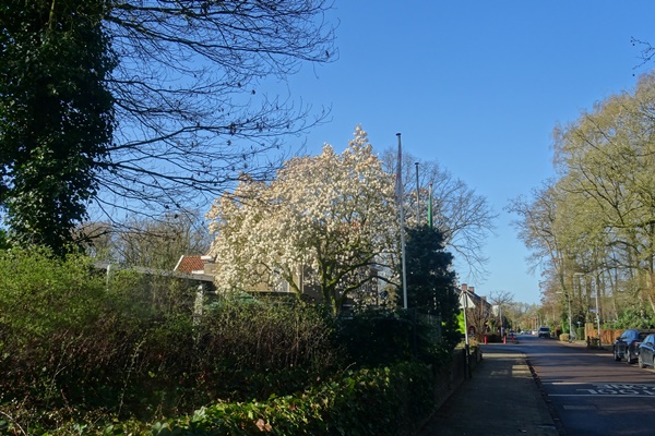 1 maart. Min. temp. 2,6 gr. Overdag een mooie dag. Geregeld zon.
