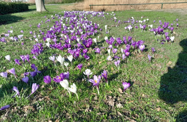 Een veld met crocussen zag ik bloeien op de terugweg naar huis