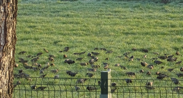 Vanmorgen al vroeg vele spreeuwen voor ons keukenraam.