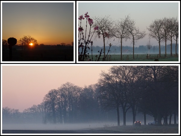 Vanmorgen foto's rondom het huis gemaakt. Mist en opkomende zon