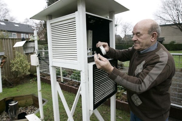 zijn weerhut en weerstation. Overleden op 7 maart 2013. Links onder